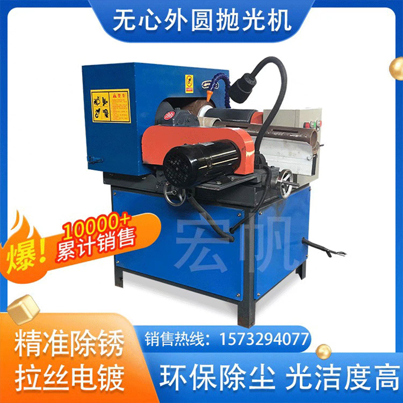 主要特點:該機結構是我公司最新設計結構,有拋光速度快、調整方便的特點。導輪轉速可調,滿足不同直徑、不同速度的工件的打磨與拋光要求,可選加裝除塵系統。適用于五金電鍍、汽摩配件、機械制造、裝飾裝潢等行業的各種軸類、管件與棒料外圓表面拋光打磨及拉絲。該機磨料耗材選擇廣泛可選用千葉輪、尼龍輪、布輪、麻輪、羊毛輪、鋼絲輪及碳化硅鏡面拋光輪等。